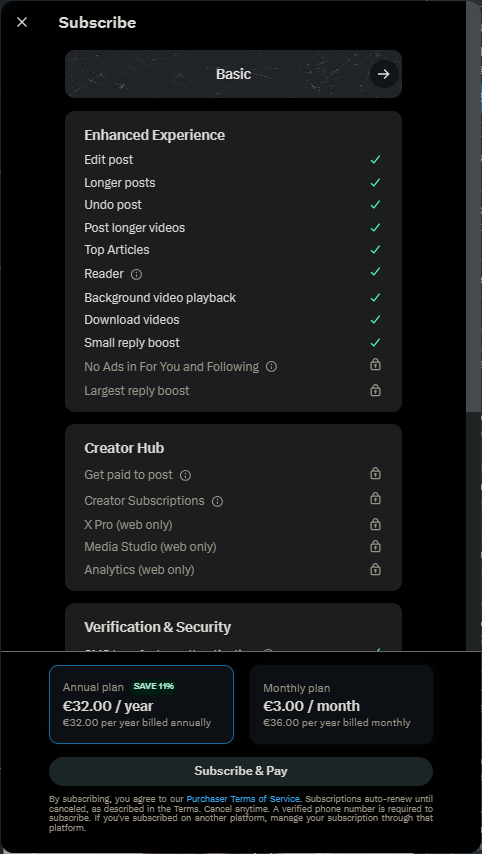 As for the « Basic » subscription, as the name suggests, it includes the basic functions of the Premium subscription. Subscribers will be able to edit publications and make them longer, but will not have access to the Creators’ Hub or the verification badge.