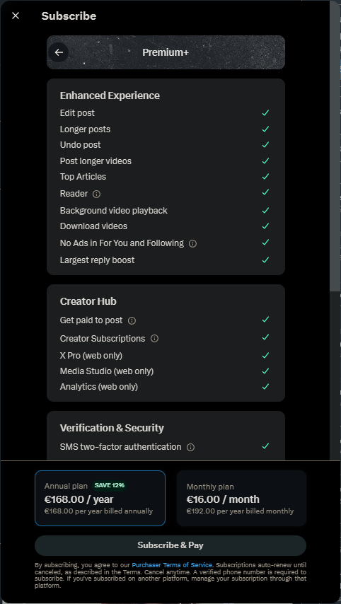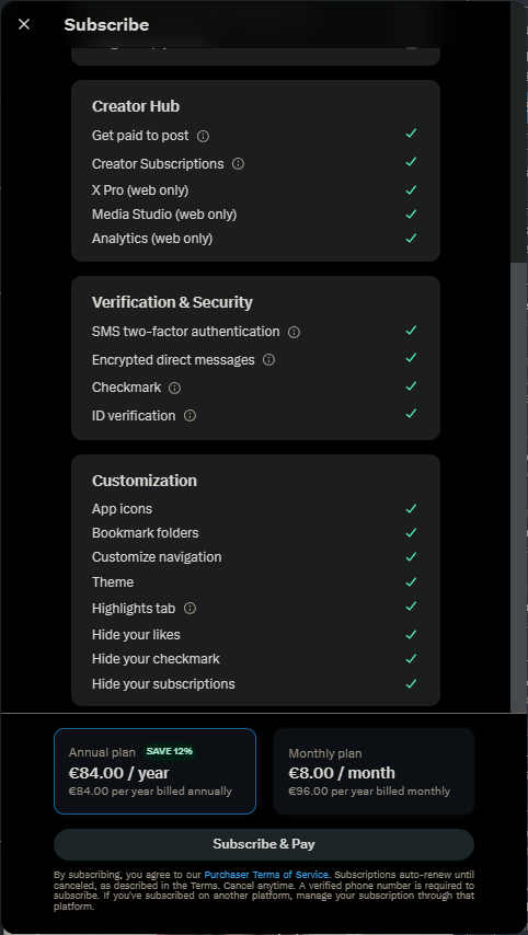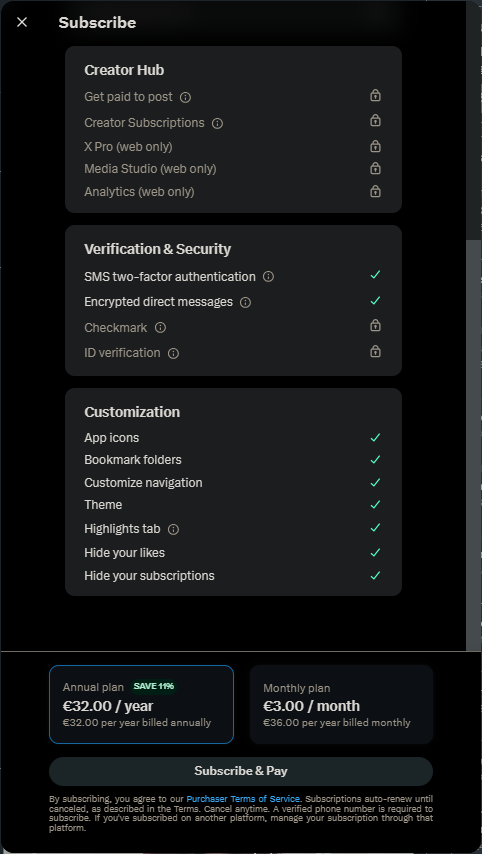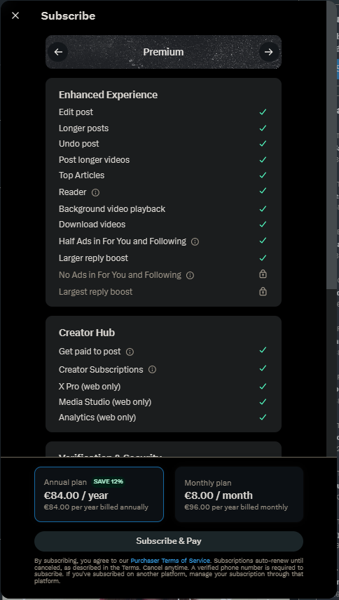 Currently, a Premium subscription is available on X for €8/month (or €84/year). In addition to the blue certification badge, it offers features designed to enhance the experience, such as: