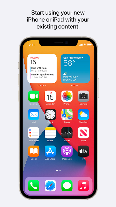 Apple possède l’application Android « Migrer vers iOS » (Move to iOS) depuis plusieurs années, qui permet à un utilisateur de récupérer ses données issues de son ancien smartphone Android pour les avoir sur son nouvel iPhone.