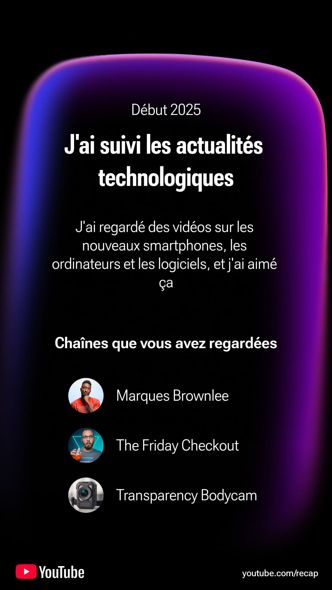 L’inspiration est assumée : comme Spotify Wrapped, le Recap est pensé pour être massivement partagé sur les réseaux. Mais là où Spotify vous parle d’heures d’écoute et d’artistes, YouTube Recap vous montre plutôt comment vous utilisez la plateforme. Quelles chaînes vous soutenez vraiment, quels univers vous explorez, comment votre feed vous a façonné en 2025. C’est moins un tableau de stats “purs chiffres” qu’un miroir de votre comportement de visionnage.