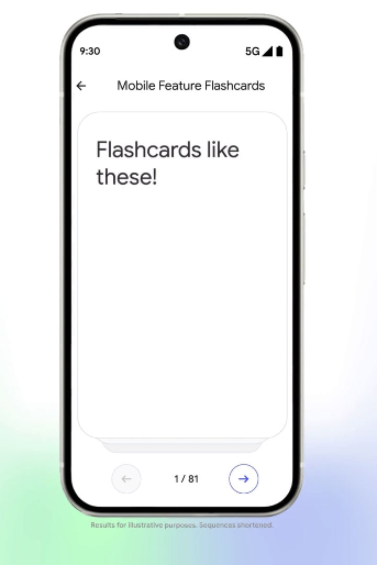 Le nouvel onglet « Studio » devient le cœur du système. Il regroupe deux outils majeurs : les fiches d’apprentissage et les quiz intelligents. Les fiches fonctionnent comme de petits rappels interactifs : une question, une définition ou une date s’affiche à l’écran, et un simple tapotement révèle la réponse. L’objectif est d’ancrer les connaissances par la répétition active, une méthode largement reconnue en sciences cognitives.