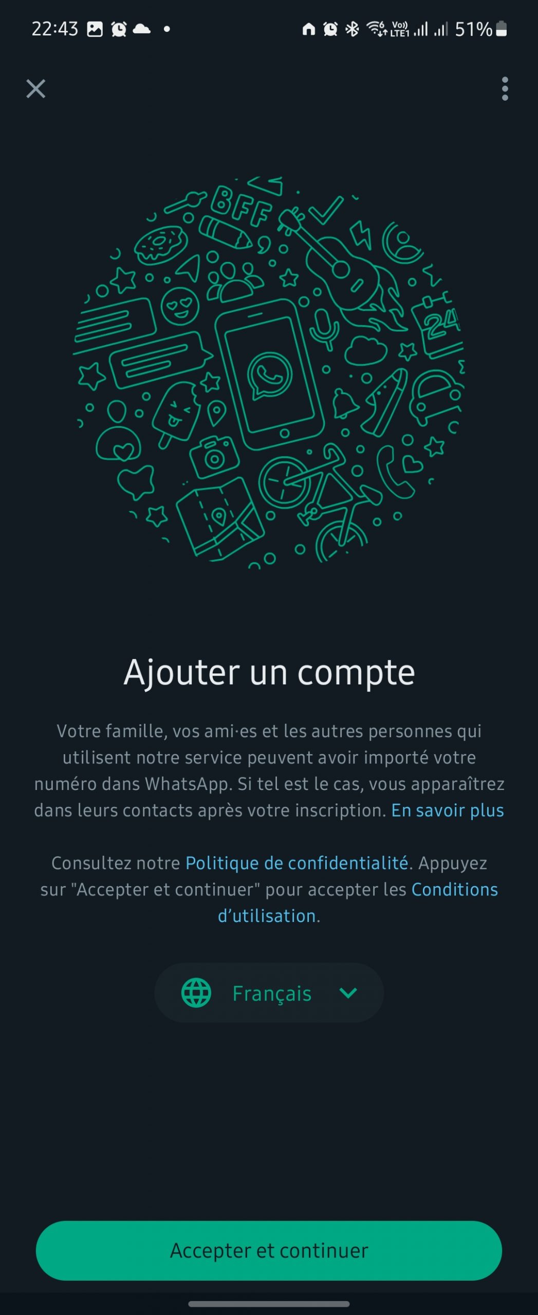 Si vous avez déjà votre compte WhatsApp sur un autre téléphone, vous pouvez tout de même l’ajouter sur un second téléphone. Il sera alors considéré comme appareil complémentaire, un peu comme WhatsApp Web.