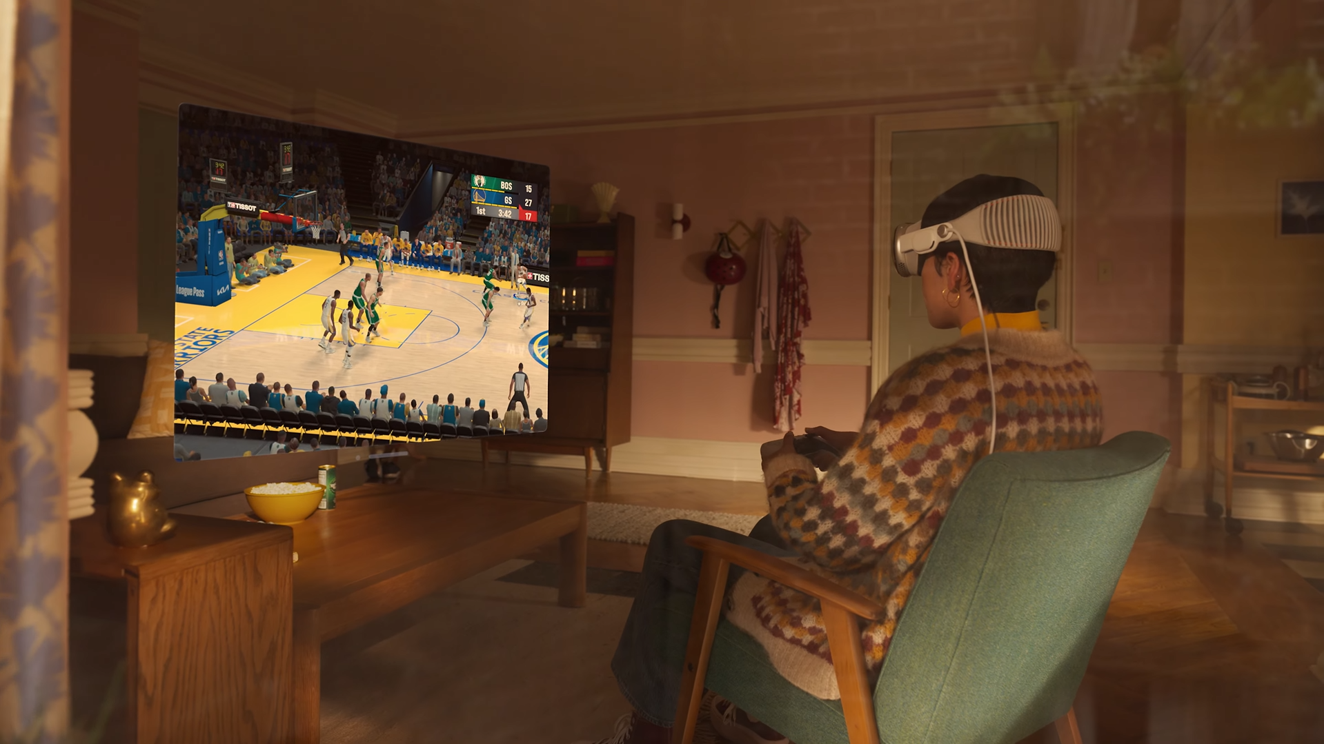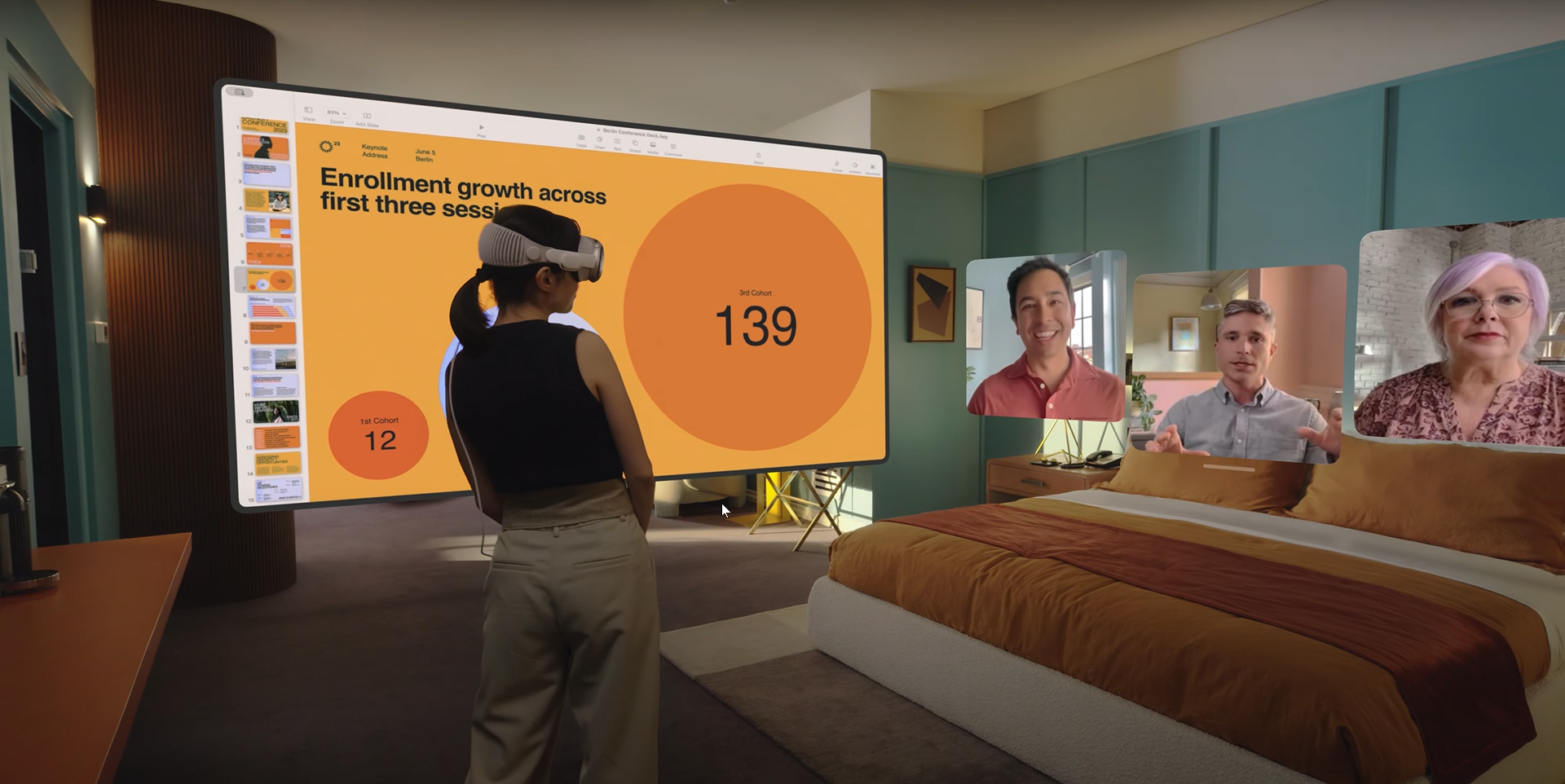 Lors de sa présentation, Apple a présenté deux cas d’utilisation de ce nouveau casque à réalité augmentée : le travail et le divertissement.