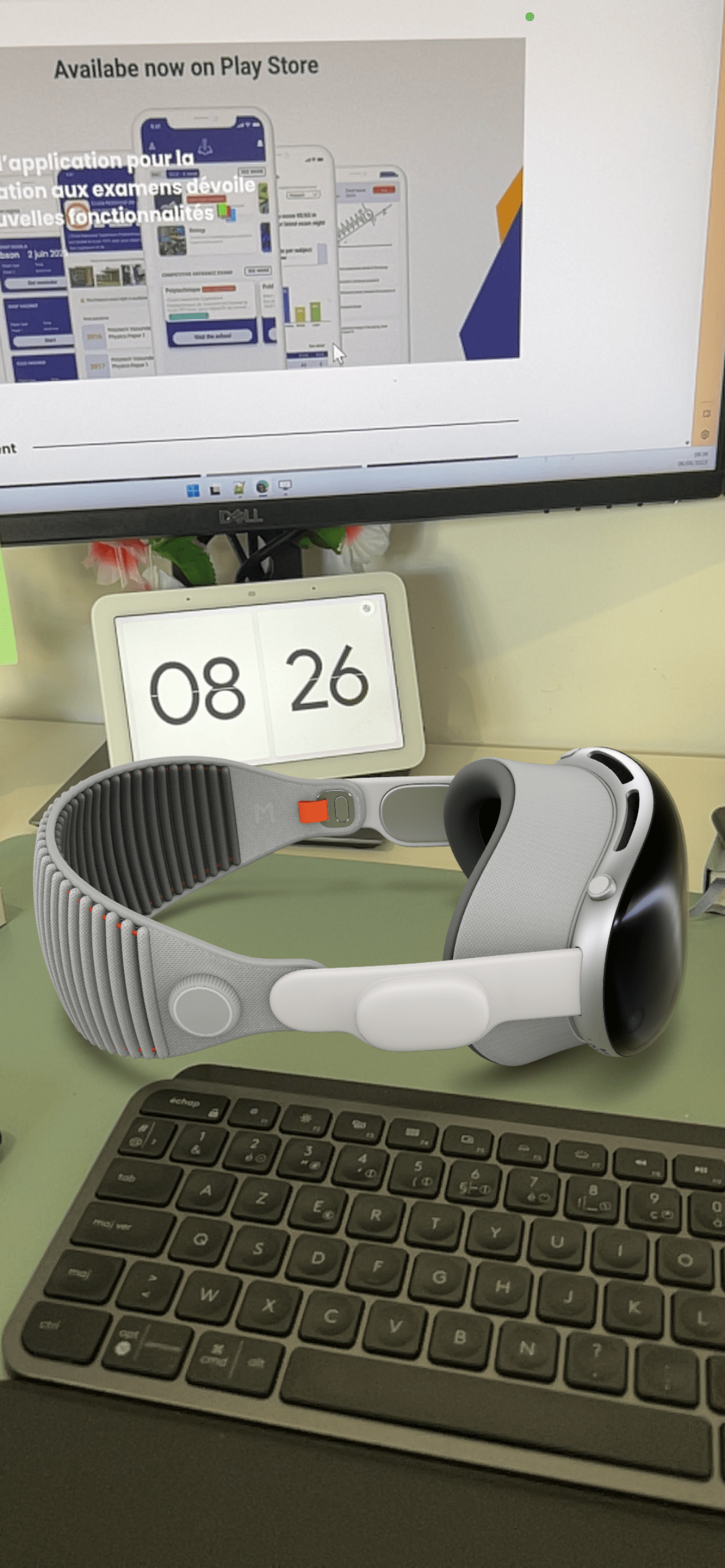 Apple Vision Pro est un casque à réalité mixte qui, grâce à un écran et des caméras, permet de mélanger monde réel qui vous entoure au monde virtuel. En le portant, vous pouvez voir, entendre et interagir avec le contenu numérique comme s’il se trouvait dans votre espace physique. Pour contrôler Vision Pro, vous n’avez qu’à utiliser vos yeux, vos doigts et votre voix.