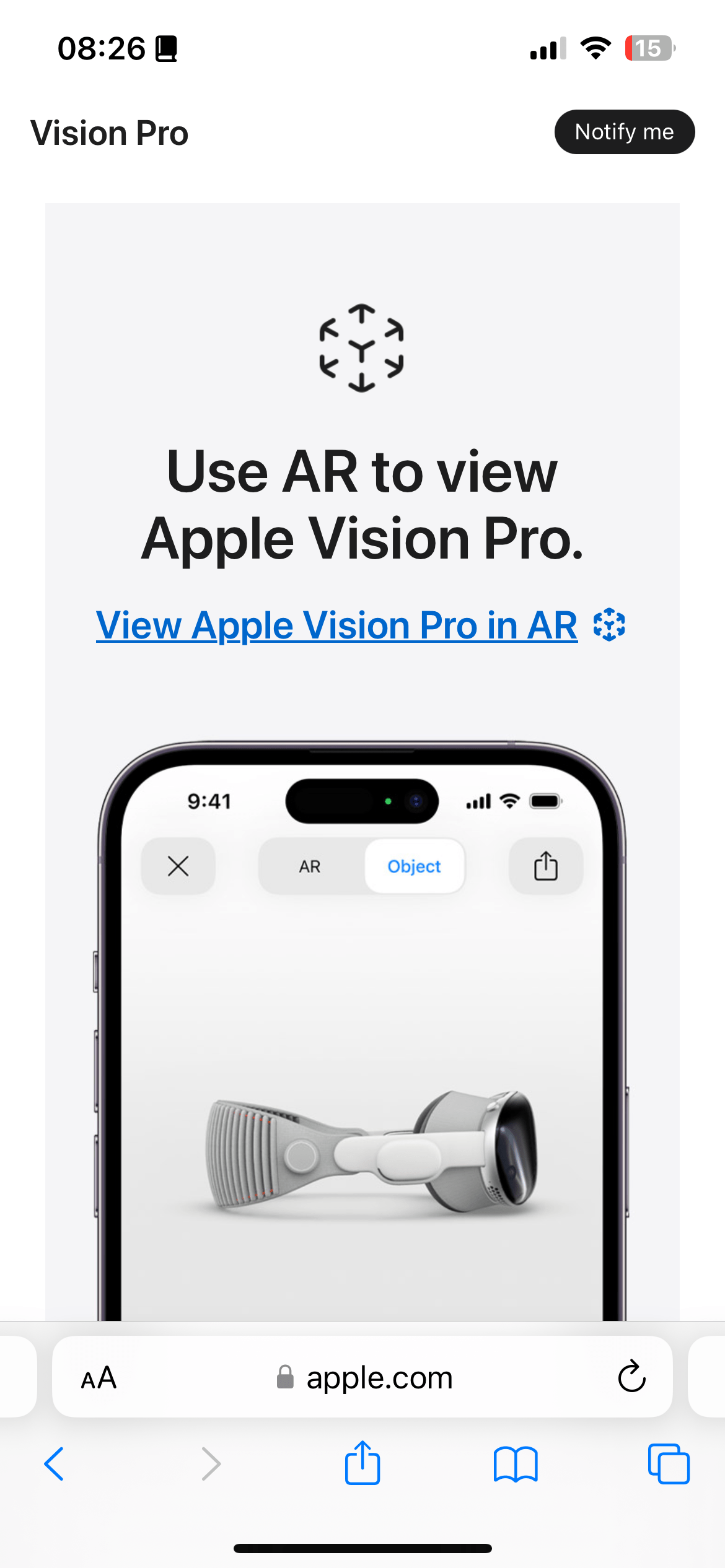 Il faudra attendre encore un bon moment avant de pouvoir tester l’Apple Vision Pro. Il ne sera en effet disponible qu’au début de l’année 2024, et uniquement aux États-Unis. En attendant, si vous possédez un iPhone ou un iPad, vous pouvez déjà avoir un aperçu du produit en réalité augmentée. Pour cela, il suffit de vous rendre sur le site d’Apple en utilisant Safari.