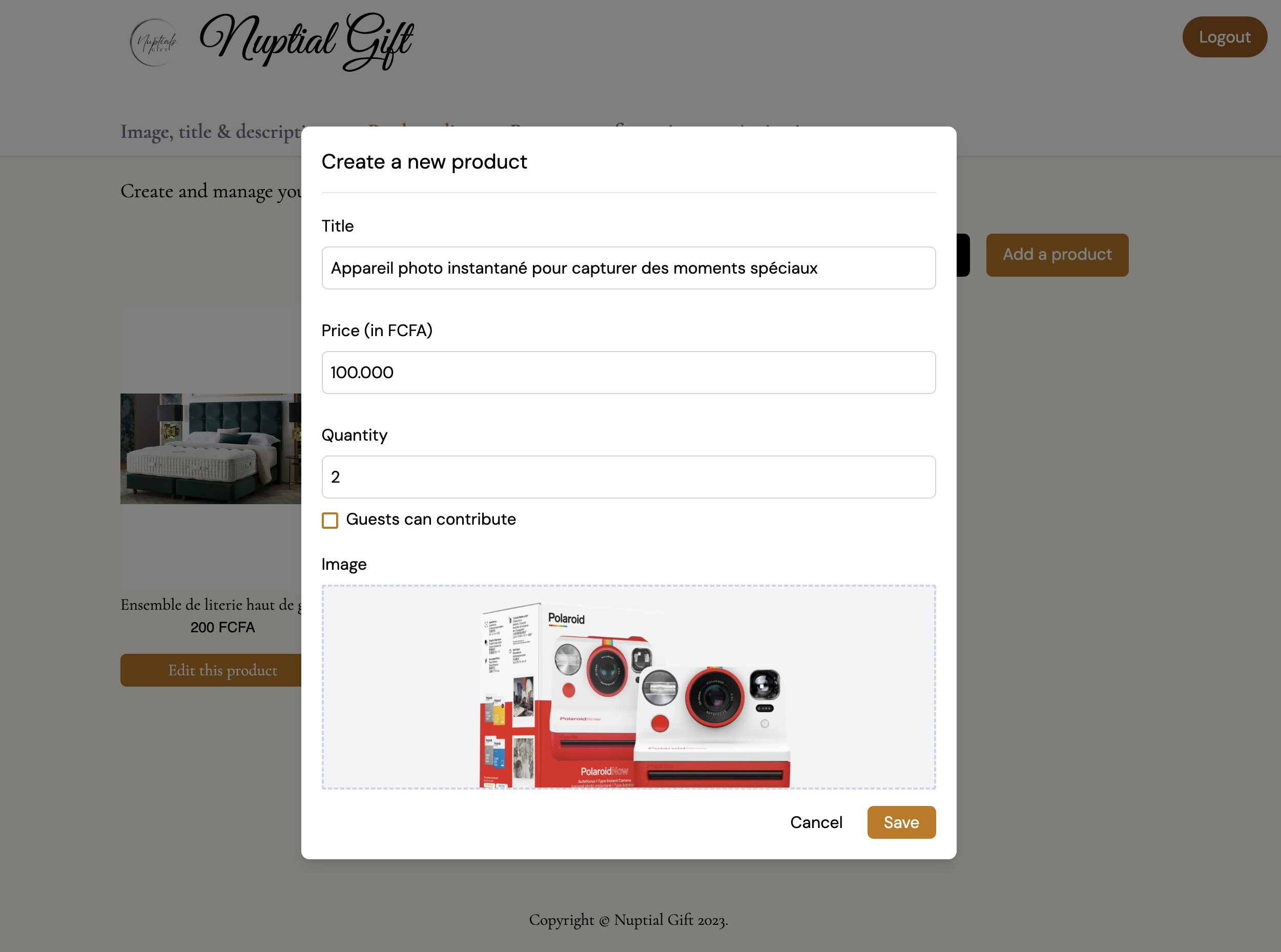 Préparer un mariage peut être à la fois excitant et stressant. Il y a tant de choses à organiser et à planifier pour faire de ce jour spécial une occasion mémorable. L’une des tâches essentielles pour les futurs mariés est de créer une liste de mariage, permettant aux invités de savoir quels cadeaux seraient les bienvenus. C’est là que « Nuptials Gift » entre en jeu, un site Internet Camerounais, conçu pour faciliter la création de listes de mariage.